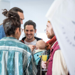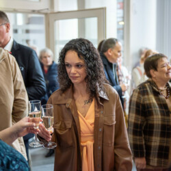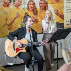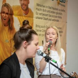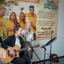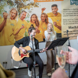 Der Empfang fand in den neuen Räumen der Nachbarschaftshilfe der Begegnungsstätte K13 statt, das in Kürze an dieser Stelle starten wird. Die Stühle wurden dankenswerterweise von der Ev. Kirchengemeinde Bad Nauheim zur verfügung gestellt, da die Räume noch nicht eingerichtet sind. Die Gäste erwartete ein Sektempfang sowie eine musikalische Begrüßung durch das Juneau-Duo mit Jule und Anna.