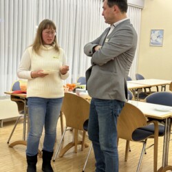Der Vorsitzende Traugott Arens gab in seiner Begrüßeungsansprache einen Rückblick auf die Entwicklung im Jahr 2023 in dem über 17.000 ehrenamtliche Stunden geleistet wurden. Er bedankte sich bei den ehrenamtlichen Mitarbeiter:innen für diesen außergewöhnlichen Einsatz. Auch die integrative Mitarbeit der Ukrainer:innen lobte Arens und beglückwünschte auch Lisa (Averianova Yelyzaveta), Mitglied des Ukraine Rats zum 18. Geburtstag.