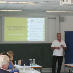 In den anschließenden Arbeitsgruppen wurden mit den Teilnehmenden die Schwerpunktthemen erörtert, Fragen beantwortet und Lösungen, die teilweise bereits realisiert sind, vorgestellt. Die Nachbarschaftshilfe Bad Nauheim war gleich in zwei Arbeitsgruppen vertreten. Zum Thema „Digitale Lösungen“ stellte Holger Dexheimer, stellv. Vorsitzender, und zu „Vernetzung der Nachbarschaftshilfen“, Traugott Arens, Vorsitzender, die Lösungsansätze und Vorschläge der Nachbarschaftshilfe Bad Nauheim vor.