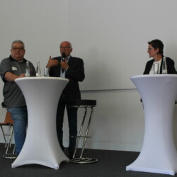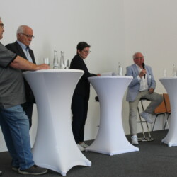 Die Beteiligten stellten sich im Anschluss den Fragen des Publikums, bevor es in die Mittagspause und der Möglichkeit der Besichtigung des Uni-Geländes und dem Haus der IG Farben ging.