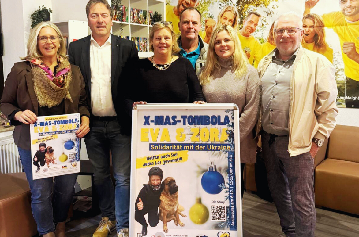 Bild (vlnr): Kerstin Jochum (Barksdale), Gabriele Arens (Nahi), Michael Weileder (GF Barksdale), Irmgard Guse (Nahi), Traugott Arens (vors. Nahi), Mariia Rudytsia (Nahi), Miriam Böeff (Nahi), Marcel Vogeler (Nahi)