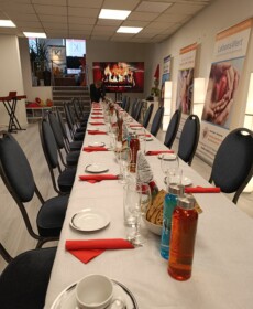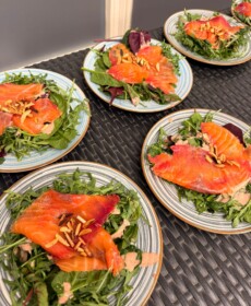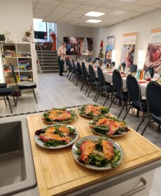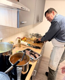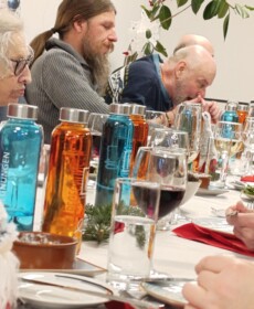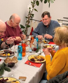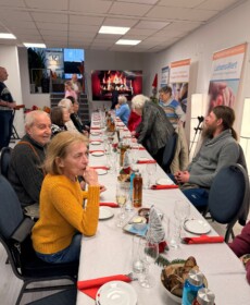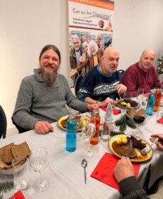 Für den kulinarischen Rahmen sorgte Steffen Hensel, der ein liebevoll zusammengestelltes drei Gänge Menü mit Lachs auf Salat als Vorspeise, Burgunderbraten mit Klößen und Rotkraut als Hauptspeise und zum Abschluss Lebkuchen-Mascarpone im Glas vorbereitet hatte.
