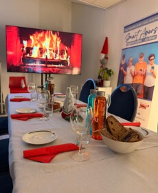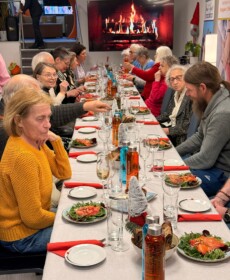 Begrüßt wurden die Gäste mit einem Sektempfang durch Traugott Arens, den Vorsitzenden der Nachbarschaftshilfe sowie Rory Taylor, der auch für den Service verantwortlich zeichnete. In seiner Ansprache eröffnete Arens die festlich gedeckte Tafel und hieß alle herzlich willkommen. Nach feierlicher Eröffung der Weihnachtstafel stellte Rory Tayler den Ablauf, das Menue und anschließend das engagierte Team vor, das für das Gelingen der Veranstaltung verantwortlich war – ein herzliches Dankeschön an alle Helferinnen und Helfer, die ihre Zeit und Energie einbrachten.