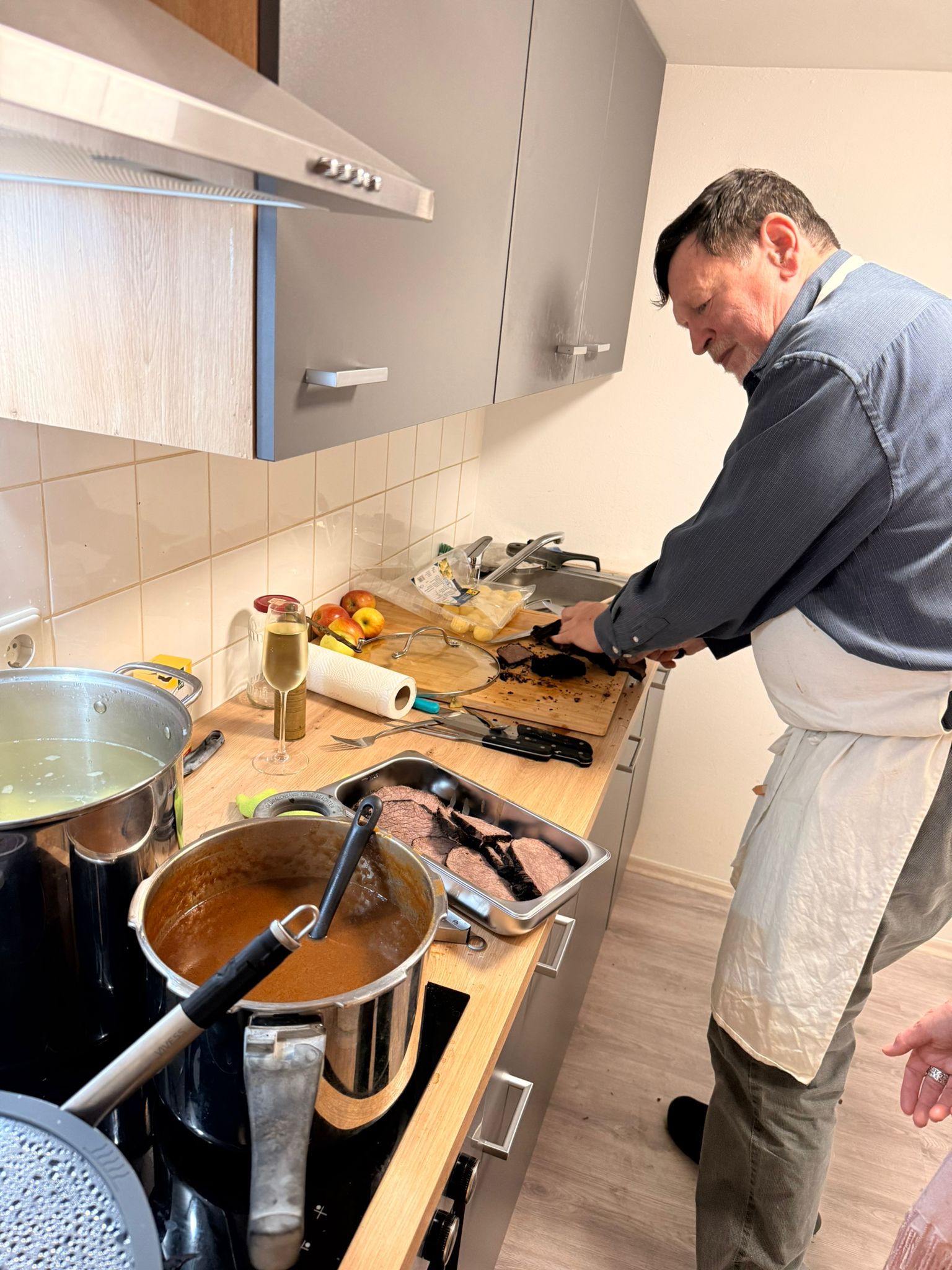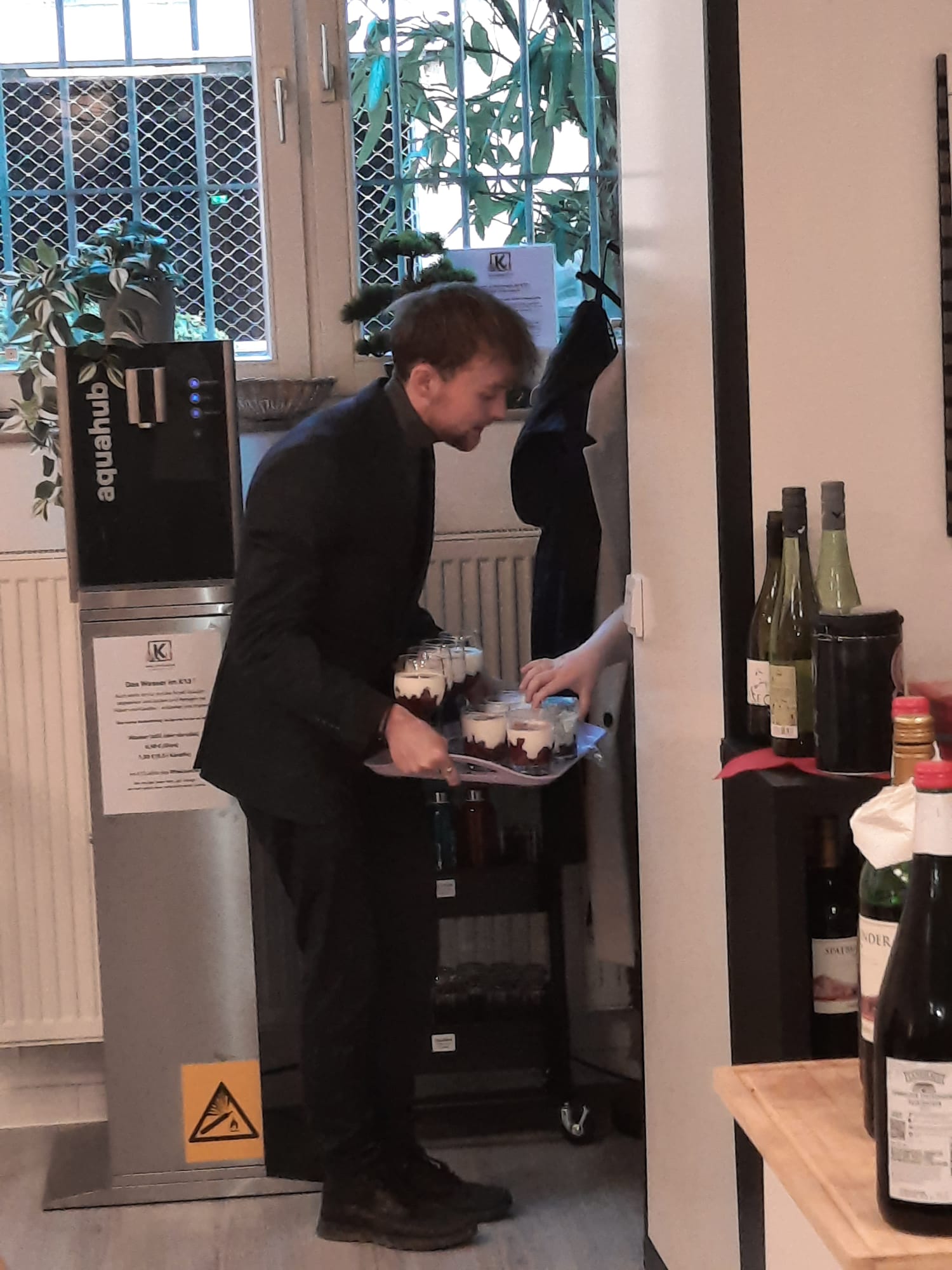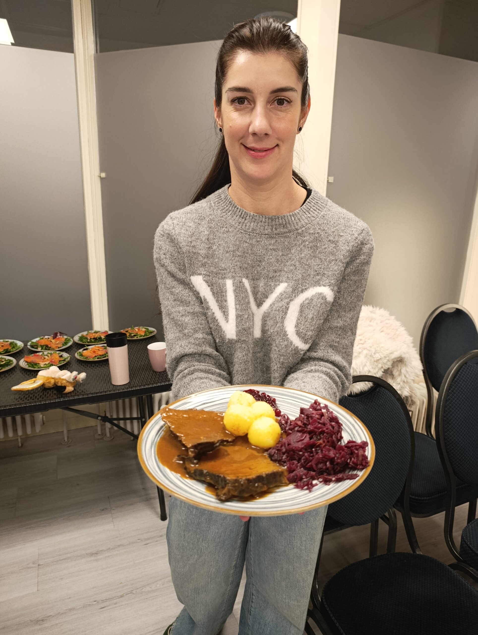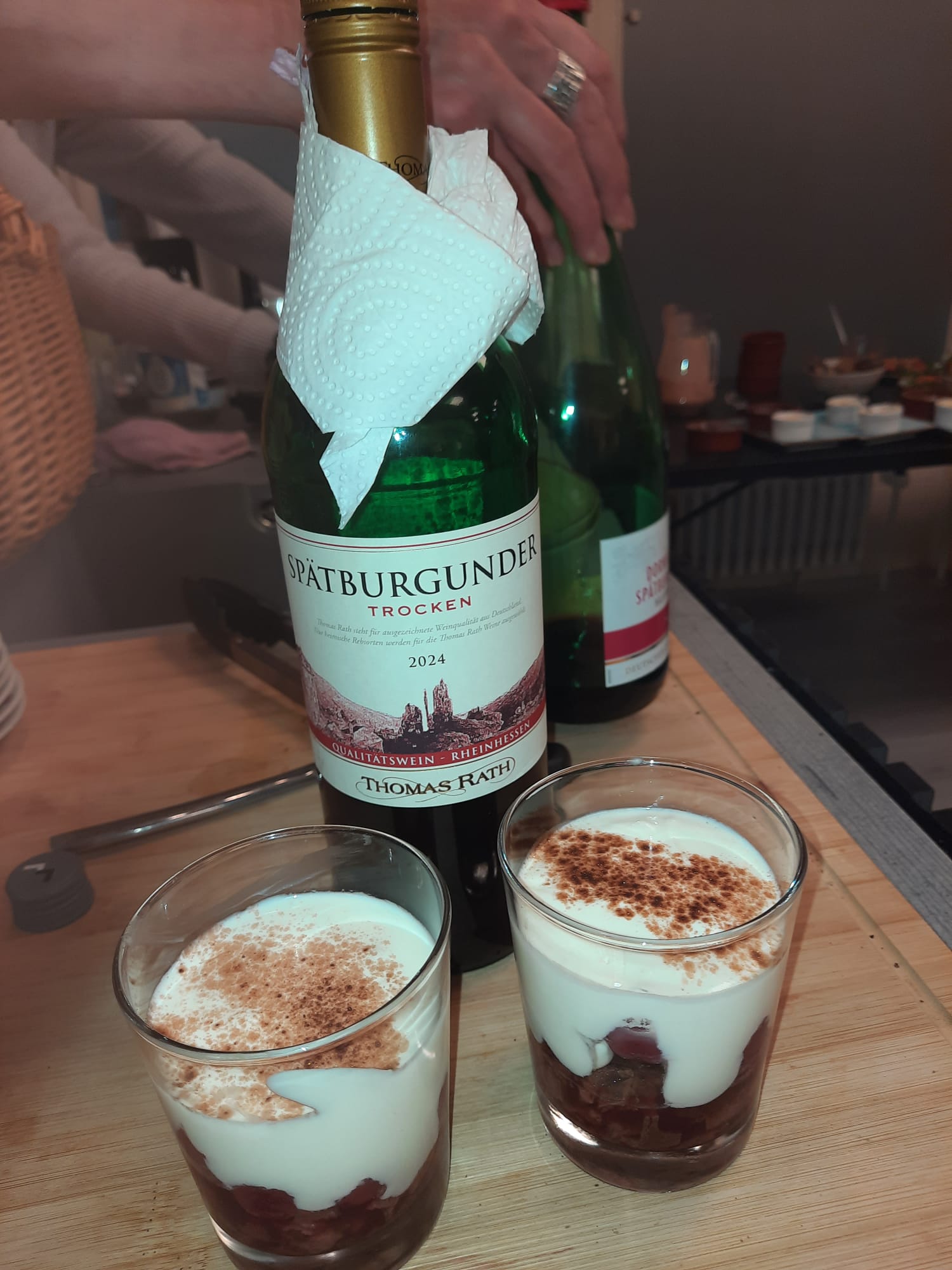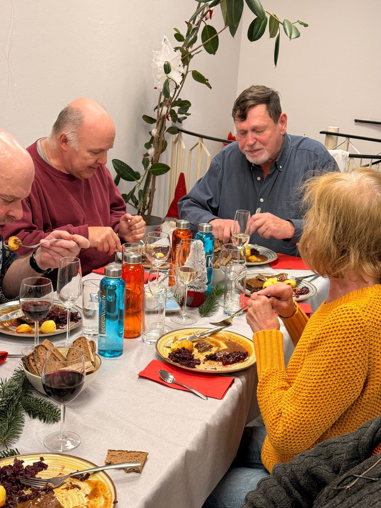 Für den kulinarischen Rahmen sorgte Steffen Hensel, der ein liebevoll zusammengestelltes drei Gänge Menü mit Lachs auf Salat als Vorspeise, Burgunderbraten mit Klößen und Rotkraut als Hauptspeise und zum Abschluss Lebkuchen-Mascarpone im Glas vorbereitet hatte.