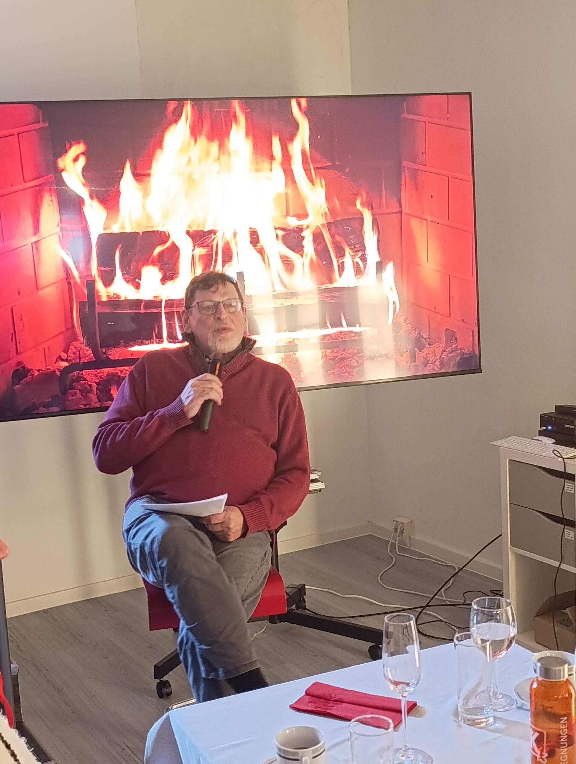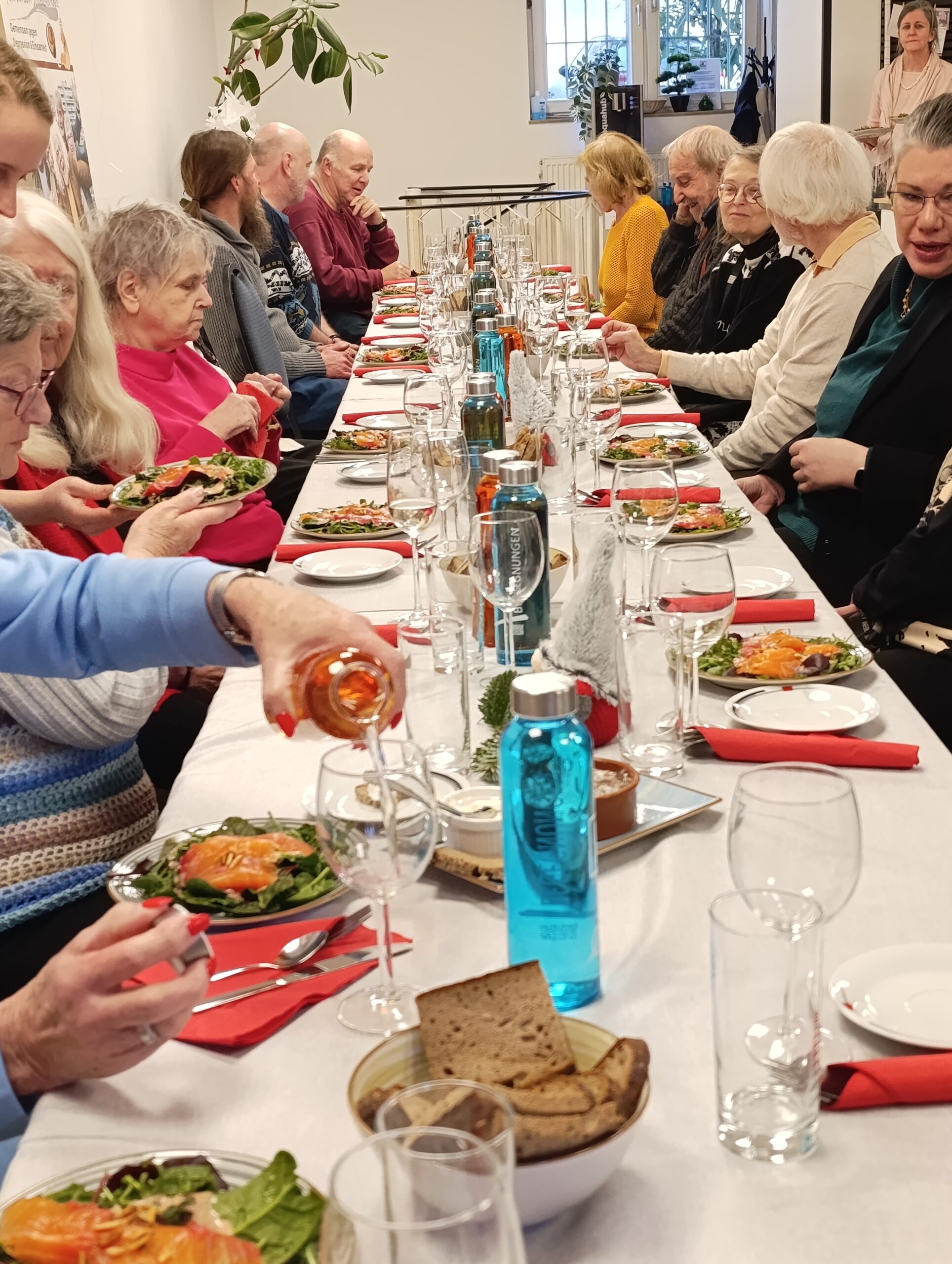 Begrüßt wurden die Gäste mit einem Sektempfang durch Traugott Arens, den Vorsitzenden der Nachbarschaftshilfe sowie Rory Taylor, der auch für den Service verantwortlich zeichnete. In seiner Ansprache eröffnete Arens die festlich gedeckte Tafel und hieß alle herzlich willkommen. Nach feierlicher Eröffung der Weihnachtstafel stellte Rory Tayler den Ablauf, das Menue und anschließend das engagierte Team vor, das für das Gelingen der Veranstaltung verantwortlich war – ein herzliches Dankeschön an alle Helferinnen und Helfer, die ihre Zeit und Energie einbrachten.