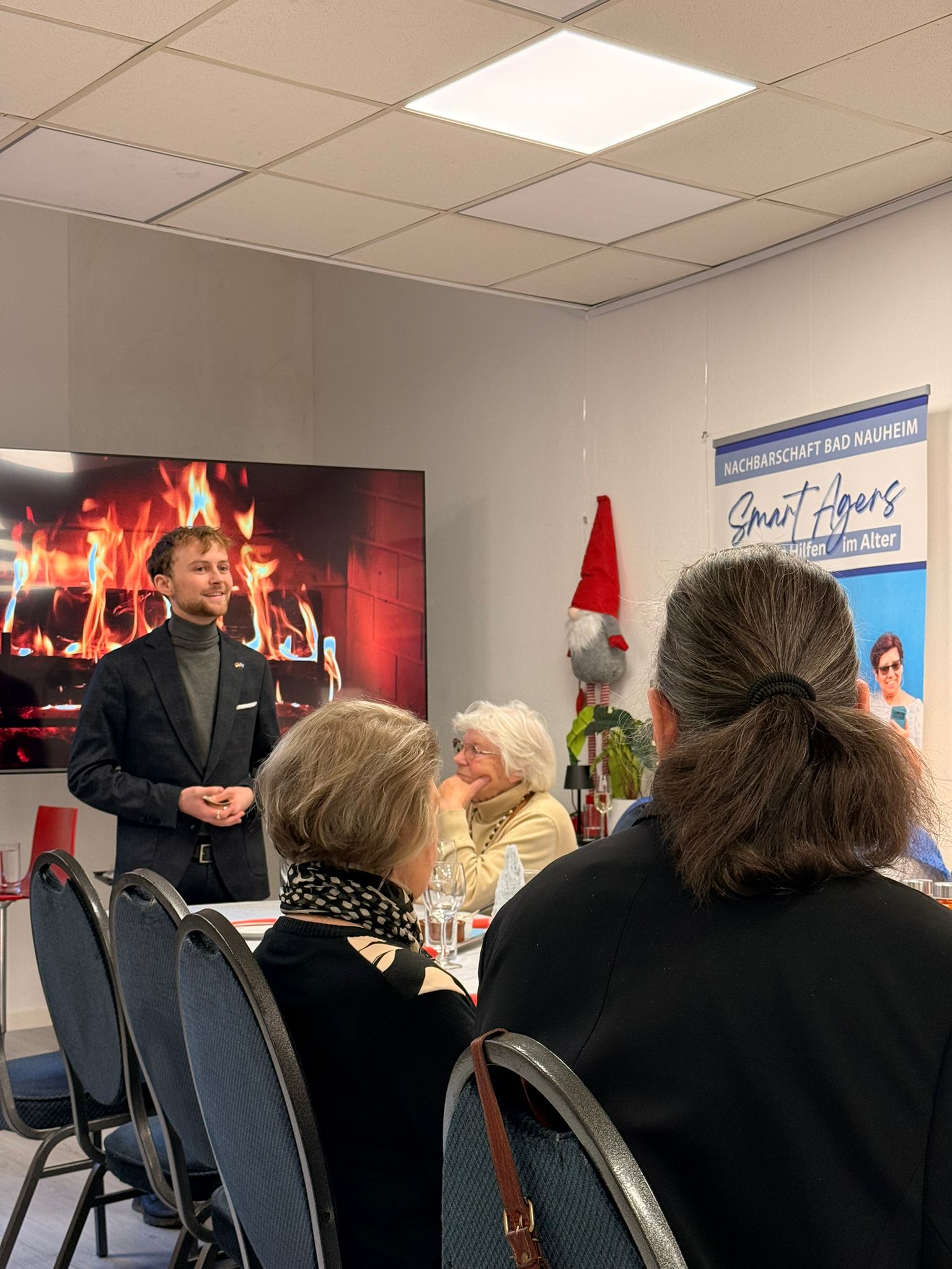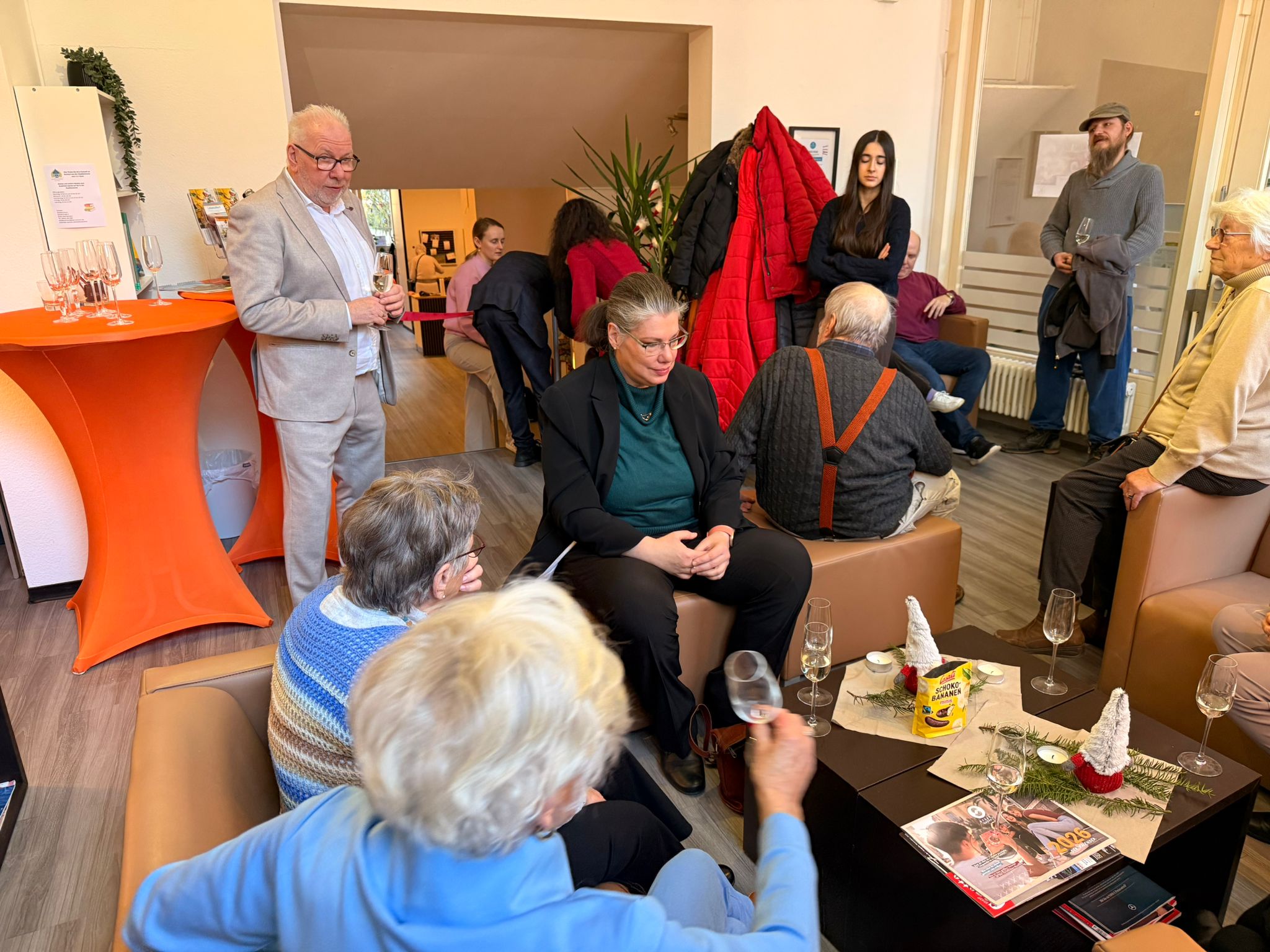 Die festliche Stimmung wurde zusätzlich durch ein künstlerisches Rahmenprogramm unterstrichen: Beiträge von Dieter Obleser, Licia Schiffmann sowie einige Weihnachtslieder von Manfred Marmulla sorgten für ein rundum stimmungsvolles Erlebnis. Musik und Darbietungen luden zum Zuhören, Mitsingen und Genießen ein und gaben eine besonders herzliche Note. In seiner Weihnachtsnsprache dankte Steffen Hensel, seit Dezember auch Schriftführer der Nachbarschaftshilfe, noch einmal allen Initiatoren und Möglichmachern und stellte einmal mehr die Bedeutung von „Nachbarschaftlicher Begegnung“ in den Mittelpunkt. Er dankte allen ehrenamtlich Engagierten für die Arbeit in der Nachbarschaftshilfe, die nicht nur durch Betreuung der Senioren zuhause sondern auch auch mit den Begegnungen im K13 einen wichtigen Beitrag zur sozialen Teilhabe in Bad Nauheim ermöglichten.